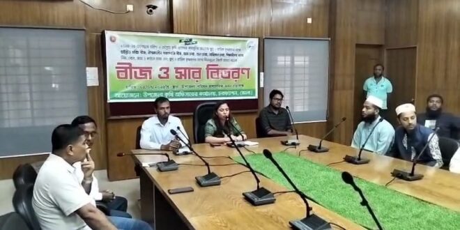 চরফ্যাশনে ক্ষুদ্র ও প্রান্তিক কৃষকদের মাঝে বিনামূল্যে উফশী আমন ধানের বীজ ও সার, হাইব্রীড মরিচ বীজ, গ্রীস্মকালীন শাকসবজি বীজ, আম চারা, তাল চারা, নারিকেল চারা, শিক্ষার্থীদের মাঝে নিম, বেল, জাম ও কাঠাল চারা বিতরণ উদ্বোধন করা হয়েছে।