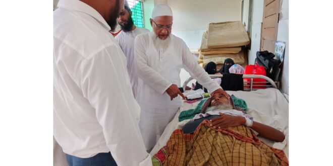 বরিশালের হিজলা উপজেলার বাউশিয়া গ্রামের বাসিন্দা ও বাবুগঞ্জের রাজগুরু দাখিল মাদ্রাসার সহ সুপার মাওলানা রুহুল আমিন বুধবার (২ জুলাই) হিজলা থেকে বরিশাল যাওয়ার পথে মুলাদীর নবাবের হাট এলাকায় সড়ক দুর্ঘটনায় মারাত্মক আহত হন। বৃহস্পতিবার (৩ জুলাই) বিকালে শের-ই-বাংলা মেডিকেল কলেজ হাসপাতালে তাকে দেখতে গিয়েছেন বরিশাল জেলা জামায়াতের আমীর ও বরিশাল-৪ (হিজলা-মেহেন্দীগঞ্জ-কাজীরহাট) আসনে সংসদ সদস্য প্রার্থী অধ্যাপক মাওলানা মোহাম্মদ আবদুল জব্বার। তিনি রোগীর শারীরিক অবস্থার খোঁজ-খবর নেন এবং তার রোগ মুক্তি কামনায় মহান আল্লাহর কাছে দোয়া করেন। এ সময় তার সাথে ছিলেন জেলা জামায়াতের কর্ম পরিষদ সদস্য এ্যাডভোকেট জহির উদ্দিন ইয়ামিন ও জেলা ইউনিট সদস্য মুজাহিদুল ইসলাম ইউসুফ