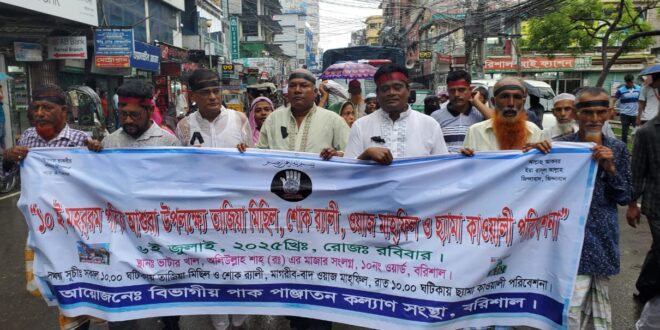 আজ সকাল ১০ টায় নগরীর ভাটার খাল এলাকা থেকে এ উপলক্ষে মিছিল বের করে- বরিশাল বিভাগীয় পাক পাঞ্জাতন কল্যাণ সংস্থা।
