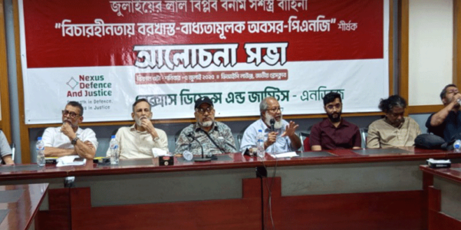 শনিবার জাতীয় প্রেসক্লাবে নেক্সাস ডিফেন্স ও জাস্টিস আয়োজিত এক আলোচনা সভায় বক্তারা এসব কথা বলেন।