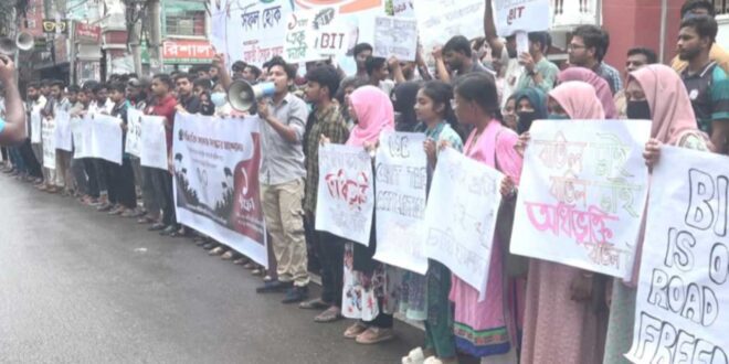 ঢাকা বিশ্ববিদ্যালয়ের (ঢাবি) অধিভুক্তি কাঠামো বাতিল করে বাংলাদেশ ইনস্টিটিউট অব টেকনোলজি মডেলের আদলে স্বতন্ত্র কমিশনের এক দফা দাবিতে বিক্ষোভ সমাবেশ করেছে বরিশাল ইঞ্জিনিয়ারিং কলেজের শিক্ষার্থীরা।