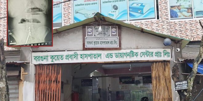 ভুক্তভোগীর স্বজন সূত্রে জানা যায়, পটুয়াখালীর কলপাড়া উপজেলার বালিয়াতলী নামক এলাকার বাসিন্দা আব্দুর রাজ্জাকের স্ত্রী কোহিনুর বেগম। গত বছর তিনি মেয়ের বাড়ি বরগুনায় বেড়াতে আসেন। পরে তার শারীরিক অসুস্থতার কারণে সদর উপজেলার ২নং গৌরীচন্না ইউনিয়নের কুয়েত প্রবাসী নামে একটি বেসরকারি হাসপাতালে ভর্তি হন।
