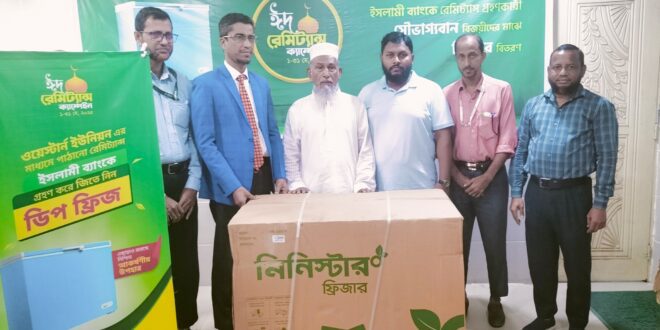 বরিশাল জেলার হিজলা উপজেলার বড়জালিয়া ইউনিয়নের বাউশিয়া গ্রামের ব্যাবসায়ী মো. আলী আকবর সিকদারের পুত্র মো. বজলুর রহমান বহুবছর ধরে সিঙ্গাপুর থাকেন। সেখান থেকে ওয়েস্টার্ন ইউনিয়নের মাধ্যমে ইসলামী ব্যাংকে পাঠানো রেমিট্যান্স গ্রহণ করে পিতা মো. আলী আকবর সিকদার ডিপ ফ্রিজ পুরস্কার প্রাপ্ত হলেন। গতকাল ১০জুলাই বৃহস্পতিবার বেলা ১১টায় মুলাদী ইসলামী ব্যাংকের হল রুমে আলী আকবর সিকদারকে ডিব ফ্রিজ প্রদান করেন বাংলাদেশ ইসলামী ব্যাংক।