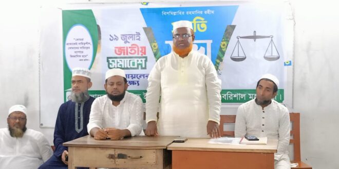 আগামী ১৯ জুলাই ঢাকার ঐতিহাসিক সোহরাওয়ার্দী উদ্যানে জাতীয় সমাবেশ বাস্তবায়ন উপলক্ষে বরিশাল মহানগরীর ২৯ নং ওয়ার্ড জামায়াতের প্রস্তুতি সভা সম্পন্ন হয়েছে। ৯ জুলাই বৃহস্পতিবার সন্ধ্যায় অনুষ্ঠিত প্রস্তুতি সভায় প্রধান অতিথি হিসেবে উপস্থিত ছিলেন বাংলাদেশ জামায়াতে ইসলামীর কেন্দ্রীয় কর্ম পরিষদ সদস্য ও বরিশাল মহানগর আমীর অধ্যক্ষ জহির উদ্দিন মোহাম্মদ বাবর।
