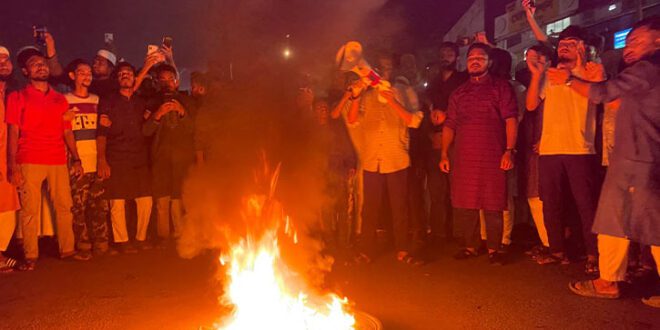 অপরদিকে একই দিন রাত সাড়ে দশটার দিকে শহরের নথুল্লাবাদ বাস টার্মিনাল এলাকায় ছাত্র-জনতার ডাকে বিক্ষোভ সমাবেশ হয়। এ সময় বিক্ষোভকারীরা সড়ক অবরোধ করে টায়ারে আগুন জ্বালিয়ে বিক্ষোভ প্রদর্শন করেন।