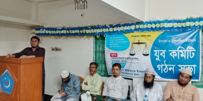 বরিশাল সদর উপজেলার চাদপুরা ও টুঙ্গিবাড়িয়া ইউনিয়নে যুব বিভাগের কমিটি গঠন ও মতবিনিময় সভার আয়োজন করা হয় । গত ১২ জুলাই রোজ শনিবার সাহেবের হাট বাজারে ছাত্র শিবিরের কার্যলয়ে অনুষ্ঠিত হয়। অনুষ্ঠানের প্রধান অতিথি হিসেবে উপস্থিত ছিলেন জামায়াতে ইসলামীর সদর উপজেলার নয়বে আমির মাও. ইসমাইল হোসেন নেছারী । প্রধান বক্তা হিসেবে উপস্থিত ছিলেন বরিশাল মহানগরের যুব বিভাগের সদস্য এ্যাড.কাওছার হোসেন।