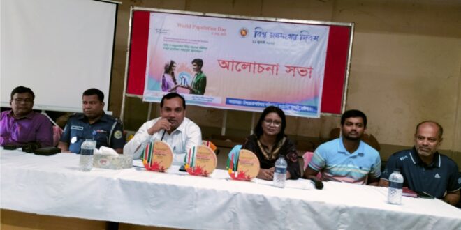 উপজেলা পরিবার পরিকল্পণা কার্যালয়ের আয়োজনে “ন্যায্য ও সম্ভাবনাময় বিশ্বে পছন্দের পরিবার গড়তে প্রয়োজন তারুণ্যের ক্ষমতায়ন” এ প্রতিপাদ্য বিষয়ের আলোচনা সভায় সভাপতিত্ব করেন উপজেলা পরিবার পরিকল্পণা কর্মকর্তা লায়লা পারভিন। প্রধান অতিথি হিসেবে উপস্থিত ছিলেন উপজেলা নির্বাহী অফিসার ও পৌর প্রশাসক মোঃ নিজাম উদ্দিন।