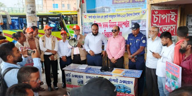 এ সময় বক্তারা বলেন, জুলাই শহীদ দিবস এবং জুলাই গণঅভ্যুত্থান দিবস ২০২৫ উপলক্ষে নিরাপদ সড়ক বিষয়ক ক্যাম্পেইন ও লিফলেট বিতরণ কর্মসূচি। গত বছর জুলাই আগস্ট গনঅভ্যুত্থানে পিরোজপুর জেলার পাঁচজন শহীদ হয়েছেন। এদের মধ্যে তিনজন বাস চালক হেলপার ও সিএনজি চালক। সড়কের নিরাপদ চলাচলের জন্যই জুলাই গণঅভ্যুত্থানের ক্যাম্পেনো লিফলেট বিতরণ কার্যক্রম চলমান থাকবে।