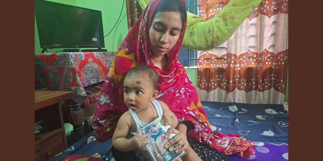 ৮মাস বয়সী রোজা আধো আধো বুলিতে প্রায়ই ডেকে ওঠে — ‘বাবা! বাবা!’ কিন্তু তার সেই ডাকে সাড়া দেওয়ার কেউ নেই। সুযোগ পেলেই বাবার ছবি আঁকড়ে ধরে শিশুটি। জুলাই অভ্যুত্থান চলাকালে ২০২৪সালের ১৯জুলাই শহীদ হন রোজার বাবা আল আমিন রনি।
