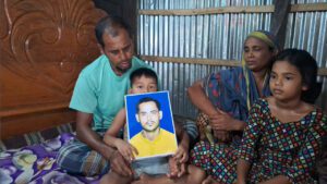 আমার ছেলে ঢাকায় থাকতো। মাসে মাসে টাকা পাঠাইতো, আরও অনেক কিছু দিত। এখন আর বলেনা মা তুমি কি খাবা? তোমার জন্য আমি কি পাঠামু? আমি রাস্তায় রাস্তায় ঘুরি, কিন্ত ছেলেকে আর খুঁজে পাইনা। এতিম নাতিরা কয় চাচ্চুরা ঢাকা থেকে আইছে, আব্বু কেনো আসেনা। তাদের বাবার আদর কে দেবে? আমারে ৫০ লাখ টাকা দিলেও আমি আর আমার ছেলেকে পাব না।