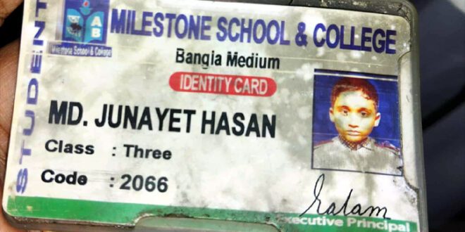 জুনায়েতের কাছে পাওয়া পরিচয়পত্র অনুসারে, সে মাইলস্টোন স্কুলের স্কুলের বাংলা মাধ্যমের তৃতীয় শ্রেণির শিক্ষার্থী।