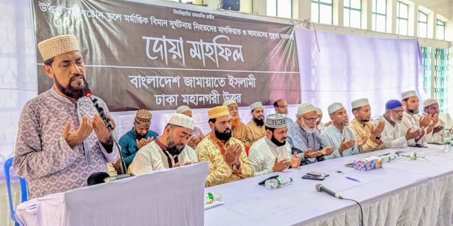 মাইলস্টোন কলেজে বিমান দুর্ঘটনা আহতদের সুস্থতা কামনা ও নিহতদের শাহাদাতের সর্বোচ্চ মর্যাদা কামনা করে দোয়া মহফিল ও ইয়াতিম খানায় খাবার বিতরণ অনুষ্ঠানে সভাপতির বক্তব্যে তিনি এসব কথা বলেন।