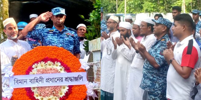 মাইলস্টোন স্কুল অ্যান্ড কলেজে প্রশিক্ষণ বিমান দুর্ঘটনায় নিহত বরিশালের মেহেন্দিগঞ্জের মোহাম্মদ সামিউল করীম সামীরের কবর জিয়ারত ও পুষ্পস্তবক অর্পণ করেছে বাংলাদেশ বিমান বাহিনী।