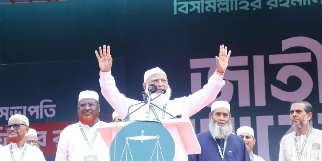 ১০. জুলাই ১৯,২০২৫ ঢাকায় জাতীয় মহাসমাবেশে জামাতে ইসলামের আমির ডা. শফিকুর রহমান বারবার লুটিয়ে পড়েছেন—শারীরিক অসুস্থতা সত্ত্বেও তিনি হেঁটেছেন, দাঁড়িয়েছেন, বক্তব্য দিয়েছেন। এই দৃশ্য জাতির হৃদয়ে এক অভূতপূর্ব আলোড়ন তুলেছে। ক্ষমতা, অর্থ, সুবিধা বা বাহিনীর শক্তির জোরে নয়—একজন রোগাক্রান্ত প্রবীণ নেতার নীরব আত্মত্যাগে জনগণ দেখেছে নেতৃত্বের এক অনন্য উচ্চতা। জাতি দেখেছে, অসুস্থ শরীর কাঁপছে, কিন্তু আদর্শে কোনো কাঁপুনি নেই। তাঁর প্রতিটি লুটিয়ে পড়া যেন বলছে—এই দেশকে ভালোবাসার ত্যাগ কতটা নির্মল ও নিঃস্বার্থ হতে পারে। হাজারো জনতার চোখে জল এসেছে, মুখে উচ্চারিত হয়েছে, “এই নেতার জন্যই আমরা আশা করি”।