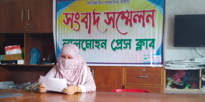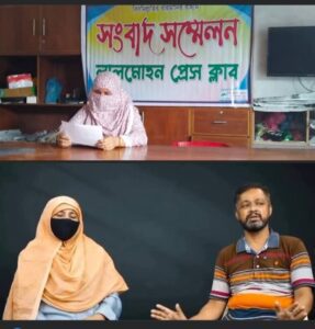 এসময় লালমোহন প্রেসক্লাবের আহ্বায়ক সোহেল আজিজ শাহিন, সদস্য সচিব মোঃ শহিদুল ইসলাম হাওলাদারসহ কর্মরত সাংবাদিকরা উপস্থিত ছিলেন। উল্লেখ্য যে ইতিপূর্বে মোসাঃ শিল্পী লালমোহন বিএনপির উল্লেখিত দুই নেতার বিরুদ্ধে অনৈতিক কাজের প্রস্তাবের অভিযোগ করেন। যা সামাজিক যোগাযোগ মাধ্যমে ব্যাপক ভাইরাল হয়।