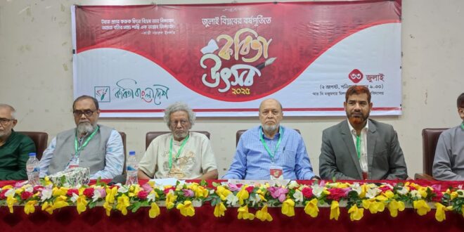 ৩৩জুলাই তথা ০২ আগস্ট শনিবার সকাল ১০টায় ঢাকা বিশ্ববিদ্যালয়ের আরসি মজুমদার হলে কবিতা বাংলাদেশ আয়োজিত কবিতা উৎসব ও সেমিনারে বক্তারা এসব কথা বলেন।