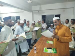 শপথ অনুষ্ঠানে নেতৃত্ব দেন প্রধান নির্বাচন কমিশনার নেছার উদ্দিন আহম্মদ, যিনি উপস্থিত সকল প্রতিনিধিকে জনগণের সেবায় নিয়োজিত থেকে সততা, নিষ্ঠা ও জবাবদিহিতার সঙ্গে দায়িত্ব পালনের আহ্বান জানান। নির্বাচন কমিশনের অন্যান্য সদস্য মো: মোতাছিম বিল্লাহ, অ্যাডভোকেট নুরুজ্জামান,খাজা মাসুম বিল্লাহ কাওছারী, জসিম উদ্দিন সিকদার এবং নির্বাচন কমিশন সচিব ও সোসাইটির সদস্য সচিব মো: আবু জাফর শপথ অনুষ্ঠান সুষ্ঠুভাবে পরিচালনায় গুরুত্বপূর্ণ ভূমিকা পালন করেন।