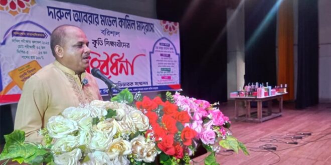 শনিবার (২আগস্ট) সকাল ১০টায় বরিশাল শিল্পকলা একাডেমিতে দারুল আবরার মডেল কামিলা মাদরাসা থেকে দাখিল (এসএসসি) পরীক্ষায় শতভাগ উত্তীর্ণ কৃতি শিক্ষার্থীদের সংবর্ধনা অনুষ্ঠান ও অভিভাবক সম্মেলনে প্রধান অতিথির বক্তব্যে তিনি এ কথা বলেন।