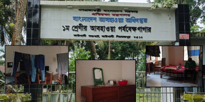 সরেজমিনে দেখা যায়, নৌ আবহাওয়া পূর্বাভাস কেন্দ্রটির মূল ফটকে তালা ঝুলছে। পাশের পকেট গেট দিয়ে অফিসে প্রবেশ করে দেখা যায় অফিস থাকলেও নেই সেবা, নেই কর্মচারীদের উপস্থিতি, নেই কার্যক্রমের চিহ্ন। বরং অফিস কক্ষগুলোতে বসার টেবিল সরিয়ে রাখা হয়েছে বিছানা, আর অফিসের আসবাবপত্র সরিয়ে রাখা হয়েছে বাইরে। অফিস কক্ষে দড়ি টানিয়ে শুকানো হচ্ছে জামা-কাপড়, করা হচ্ছে রান্নাবান্না। অফিস কক্ষগুলো যেন রীতিমতো একটি আবাসিক হোটেলের রূপ নিয়েছে। যেসব যন্ত্রপাতি প্রাথমিকভাবে বসানো হয়েছিল, সেগুলো এখন অব্যবহৃত অবস্থায় পড়ে আছে। আর কর্মচারীদের দেখা মেলে ‘কালেভদ্রে’।