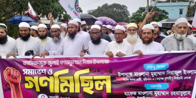 ( ৫ আগস্ট ২০২৫) মঙ্গলবার বিকালে বাবুগঞ্জ উপজেলার স্টীল ব্রীজ এলাকায় ফ্যাসিবাদ মুক্ত জুলাই গনঅভ্যুত্থান দিবস উপলক্ষে ইসলামী আন্দোলন বাংলাদেশ বাবুগঞ্জ উপজেলা শাখার উদ্যোগে অনুষ্ঠিত গনমিছিল ও সমাবেশে প্রধান অতিথির বক্তব্যে তিনি এসব কথা বলেন।