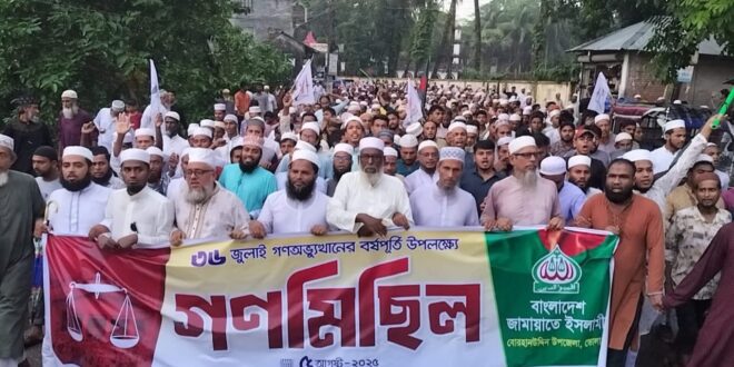এম.জামাল,বোরহানউদ্দিন প্রতিনিধি: গণঅভ্যুত্থান দিবস’ উপলক্ষে ৫ আগস্ট বিকেলে বোরহানউদ্দিন উপজেলা জামায়াতে ইসলামীর উদ্যোগে এক বিশাল গণমিছিল অনুষ্ঠিত হয়। বোরহানউদ্দিন উপজেলা মডেল মসজিদের সামনে থেকে মিছিলটি শুরু হয়ে শহরের প্রধান প্রধান সড়ক প্রদক্ষিণ করে হাওলাদার মার্কেট সংলগ্ন রাস্তায় এক সংক্ষিপ্ত সমাবেশের মাধ্যমে শেষ হয়।