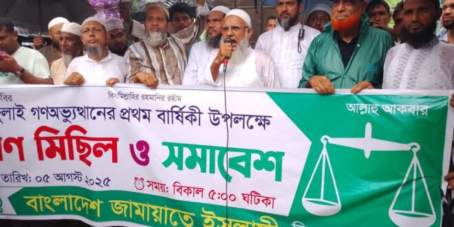 ৫ আগস্ট (মঙ্গলবার) বিকেল সাড়ে ৫টায় হিজলা উপজেলা জামায়াতের উদ্যোগে জুলাই গণঅভ্যুত্থানের বর্ষপূর্তি উপলক্ষে এ কর্মসূচি অনুষ্ঠিত হয়।