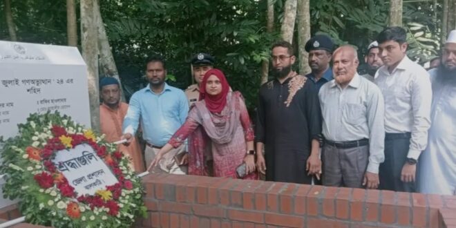 মঙ্গলবার (৫আগস্ট) সকাল ৯টায় কাঠালিয়া উপজেলার চেঁচরীরামপুর এলাকায় শহীদ রাকিব হাওলাদার এর কবরে পুষ্পমাল্য অর্পন করেন উপজেলা নির্বাহী অফিসার জহিরুল ইসলাম।