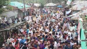 শুক্রবার (০৮জুলাই) বিকেল ৫টায় উপজেলার শম্ভুপুর ইউনিয়নের বাংলাবাজারে মানববন্ধন শেষে বিক্ষোভ মিছিল করেন স্থানীয় জনতা এবং ব্যবসায়ীরা। পরে মিছিলটি নিয়ে দক্ষিণ খাসের বাজারের বিভিন্ন সড়ক প্রদক্ষিণ শেষে খাসের হাট বাজারের চৌরাস্তায় এক প্রতিবাদ সমাবেশ করেন এলাকাবাসীসহ সর্বস্তরের জনসাধারণ।
