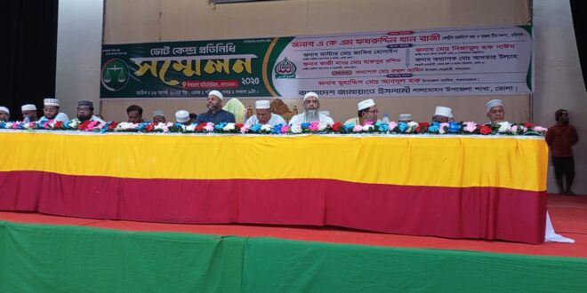 আজিম উদ্দিন খান, লালমোহন, ভোলা: ভোলার লালমোহন উপজেলা জামায়াতে ইসলামীর আয়োজনে ভোট কেন্দ্র প্রতিনিধি সম্মেলন অনুষ্ঠিত হয়েছে। ১৬ আগষ্ট শনিবার সকালে উপজেলা পরিষদের অডিটোরিয়ামে এই সম্মেলনে সভাপতিত্ব করেন উপজেলা আমীর মুহাদ্দিস মাওলানা আব্দুল হক। উপজেলা সেক্রেটারি অধ্যাপক রুহুল আমিনের সঞ্চালনায় সম্মেলনে প্রধান অতিথি হিসেবে বক্তব্য রাখেন একেএম ফখরুদ্দিন খান রাজী, কেন্দ্রীয় মজলিসে শূরার সদস্য, অঞ্চল টিম সদস্য ও ভোলার তদারককারী।