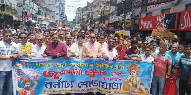 ধর্মীয় ভাবগাম্ভীর্য, ভক্তিমূলক অনুষ্ঠান, আনন্দ-উৎসব এবং বর্ণাঢ্য শোভাযাত্রার মধ্য দিয়ে বরিশালে পালিত হয়েছে হিন্দু ধর্মাবলম্বীদের অন্যতম প্রধান ধর্মীয় উৎসব জন্মাষ্টমী।