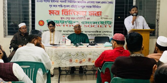 রাজধানী ঢাকার নিউটাউন সোসাইটির জন্ম হয়েছিল রাজনৈতিক অস্থিরতার এক ভয়াবহ প্রেক্ষাপটে। এটি সম্পূর্ণ একটি অরাজনৈতিক, স্বেচ্ছাসেবী সামাজিক সংগঠন, যার উদ্দেশ্য ছিল সমাজে শৃঙ্খলা, সম্প্রীতি ও সহযোগিতার ভিত্তি স্থাপন করা। ২০২৪ সালের ৫ আগস্ট ছাত্র-জনতার অভ্যুত্থানের পর প্রধানমন্ত্রী শেখ হাসিনা দেশত্যাগ করলে রাষ্ট্রীয় শাসনে এক শূন্যতা সৃষ্টি হয়। চার দিন ধরে দেশ কার্যত প্রশাসনশূন্য অবস্থায় পড়ে যায়, আইনশৃঙ্খলা ভেঙে পড়ে, ছিনতাই, চাঁদাবাজি ও সহিংসতায় জনজীবন বিপর্যস্ত হয়ে ওঠে। এই পরিস্থিতিতে নিউ টাউন এলাকার কয়েকজন সচেতন মানুষ—ইসলামী ব্যাংকের কর্মকর্তা মো: মোতাছিম বিল্লাহ ও মো: আবু জাফর, দৈনিক কালের কথার সম্পাদক খাজা মাসুম বিল্লাহ কাওছারী এবং ইসলামী ব্যাংকের আরেক কর্মকর্তা মো: জসিম উদ্দিন সিকদার—৭ আগস্ট রাতে বসে পরিস্থিতি মোকাবিলার উপায় নিয়ে আলোচনা করেন। সেই বৈঠকেই “নিউটাউন সোসাইটি” প্রতিষ্ঠার সিদ্ধান্ত হয়। মূল লক্ষ্য ছিল একটি স্বচ্ছ, অরাজনৈতিক এবং জনকল্যাণমূলক প্ল্যাটফর্ম গড়ে তোলা, যা স্থানীয় জনগণকে রাজনৈতিক সহিংসতা ও দুর্নীতির অভিশাপ থেকে মুক্ত করে একটি সমন্বিত সামাজিক কাঠামো তৈরি করবে।