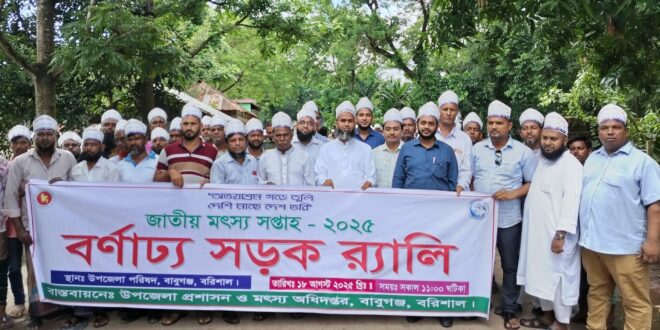 বাবুগঞ্জ (বরিশাল) প্রতিনিধি : “অভয়াশ্রম গড়ে তুলি,দেশী মাছে দেশ ভরি” এই প্রতিপাদ্যকে ধারণ করে বর্ণাঢ্য র্যালী আলোচনা সভার মধ্যে দিয়ে বাবুগঞ্জে জাতীয় মৎস্য সপ্তাহ পালিত হয়েছে। জাতীয় মৎস্য সপ্তাহ-২০২৫ এ সফল মৎস্যচাষীদের মাঝে পুরস্কার বিতরণ ও আলোচনা সভার শুভ উদ্বোধন করেন বাবুগঞ্জ উপজেলা নির্বাহী অফিসার (ইউএনও) ফারুক আহমেদ।