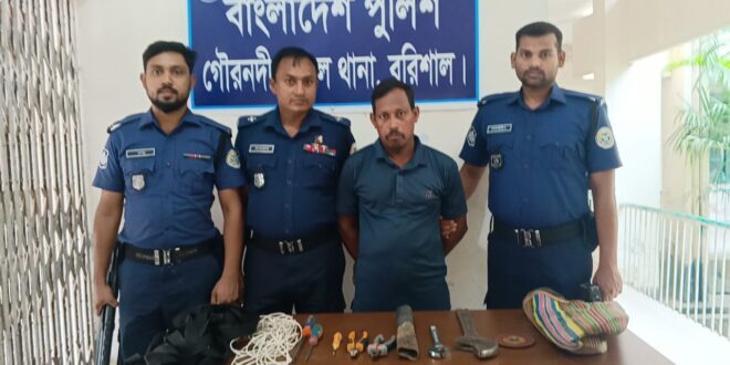 তখন আসামী সাবু শেখ (৩৬), পিতা-হাজী সত্তার শ, সাং- কসলিয়া (কলিয়া) পালানোর চেষ্টা করলে স্থানীয়দের সহায়তায় তাকে ঘটনাস্থল থেকে আটক করা হয়। পরে খবর পেয়ে গৌরনদী থানা পুলিশ ঘটনাস্থলে উপস্থিত হয়ে আটককৃত আসামীকে থানায় নিয়ে যায়। এসময় তার কাছ থেকে চুরির কাজে ব্যবহৃত বিভিন্ন সরঞ্জাম উদ্ধার করা হয়, যার মধ্যে ছিল কাটিং প্লাস, স্ক্রু ড্রাইভার, গ্রিল কাটার রড, পাইপ, নাইলন দড়ি ও অন্যান্য সরঞ্জাম।