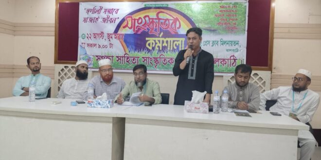 ঝালকাঠিতে সুগন্ধা সাহিত্য সাংস্কৃতিক সংসদ এর আয়োজনে সাংস্কৃতিক কর্মশালা অনুষ্ঠিত হয়েছে। ঝালকাঠি প্রেসক্লাবের হলরুমে শুক্রবার সকাল ৯টা থেকে বিকাল ৫ টা পর্যন্ত “স্বর্নালী সম্ভারে সাজাই জীবন ” এই শ্লেগানকে সামনে রেখে এ কর্মশালা চলে।