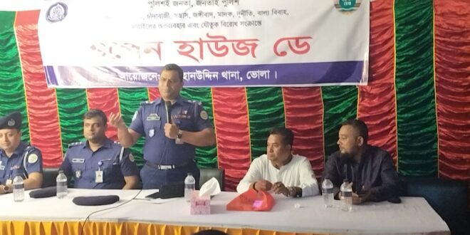 এম.জামালবোরহানউদ্দিন (ভোলা) প্রতিনিধি: ভোলার বোরহানউদ্দিন থানা প্রাঙ্গণে বৃহস্পতিবার (২৮ আগস্ট) বিকেলে পুলিশের উদ্যোগে এক বিশেষ ওপেন হাউস ডে অনুষ্ঠিত হয়েছে। অনুষ্ঠানে স্থানীয় গণ্যমান্য ব্যক্তিবর্গ, রাজনীতিবিদ, সামাজিক নেতা, সাংবাদিক এবং পুলিশ কর্মকর্তারা উপস্থিত ছিলেন। এই আয়োজনের মূল উদ্দেশ্য ছিল স্থানীয় জনগণের সঙ্গে পুলিশের সরাসরি যোগাযোগ স্থাপন করে আইনশৃঙ্খলা পরিস্থিতি নিয়ে আলোচনা করা।