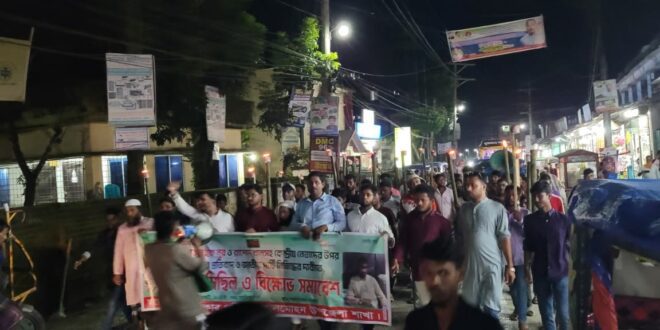 গণ-অধিকার পরিষদের সভাপতি নুরুল হক নুরসহ কেন্দ্রীয় নেতাদের ওপর হামলার প্রতিবাদে ভোলার লালমোহন উপজেলায় মশাল মিছিল করা হয়েছে।