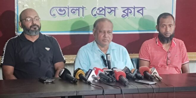 ভোলা-২ (দৌলতখান-বোরহানউদ্দিন) আসনে বিএনপি’র মনোনয়নপ্রত্যাশী রফিকুল ইসলাম মোমিন নেতাকর্মীদের প্রতিরোধের মুখে নিজ এলাকায় প্রবেশ করতে না পেরে ভোলা প্রেসক্লাবে সংবাদ সম্মেলন করেছেন।