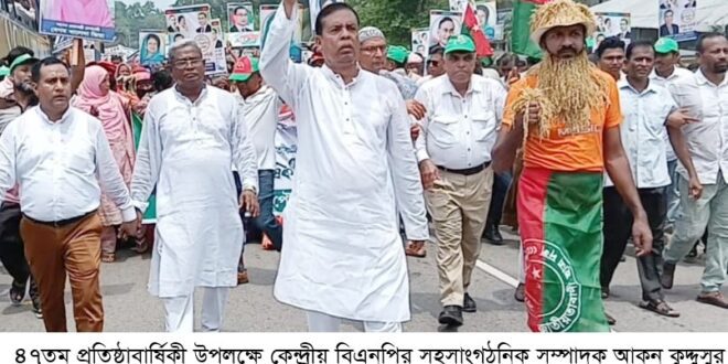 বাংলাদেশ জাতীয়তাবাদী দল (বিএনপি)র ৪৭তম প্রতিষ্ঠা বার্ষিকী উদযাপন উপলক্ষে গৌরনদী উপজেলা-পৌর বিএনপি ও সহযোগী সংগঠনের উদ্যোগে সোমবাল সকালে বর্নাঢ্য র্যালী ও সমাবেশ অনুষ্ঠিত হয়।