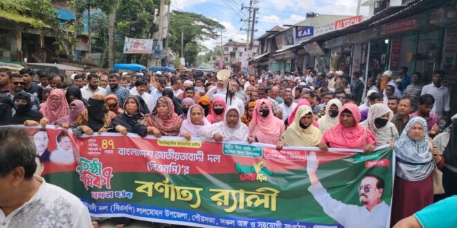 বুধবার সকালে উপজেলা বিএনপি কার্যালয়ের সামনে থেকে, উপজেলা ও পৌরসভাসহ সকল সহযোগী সংগঠনের সমন্বয়ে বিশাল র্যালি বের হয়।