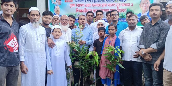 বরিশালের গৌরনদী উপজেলার খানজাপুর ইউনিয়নের তুলাতুলা বাজারে শুক্রবার (৫সেপ্টেম্বর) বিকেলে এক ব্যতিক্রমধর্মী আয়োজন অনুষ্ঠিত হয়। চব্বিশের গণঅভ্যুত্থানের শহীদদের স্মরণে বৃক্ষরোপণ এবং “ফলজ গ্রাম গড়তে” স্থানীয় শিক্ষার্থী ও তরুণ সমাজের মাঝে প্রায় এক হাজার ফলজ গাছ বিতরণ করা হয়।