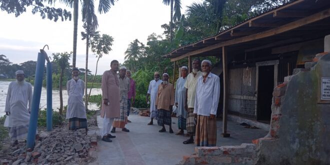 বরিশালের বানারীপাড়া উপজেলার বাইশারী ইউনিয়নের উত্তর নাজিরপুর ধানেরহাট জামে মসজিদটি সন্ধ্যা নদীর ভাঙ্গনে বিলীন হওয়ার পথে।